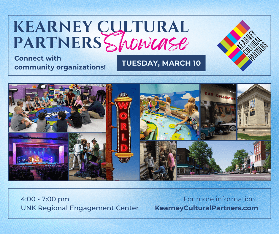Join the Kearney Cultural Partners to learn about exciting arts and culture events happening in your community! Connect with 26 local organizations, sign up for volunteer opportunities and win amazing prizes! ![]()