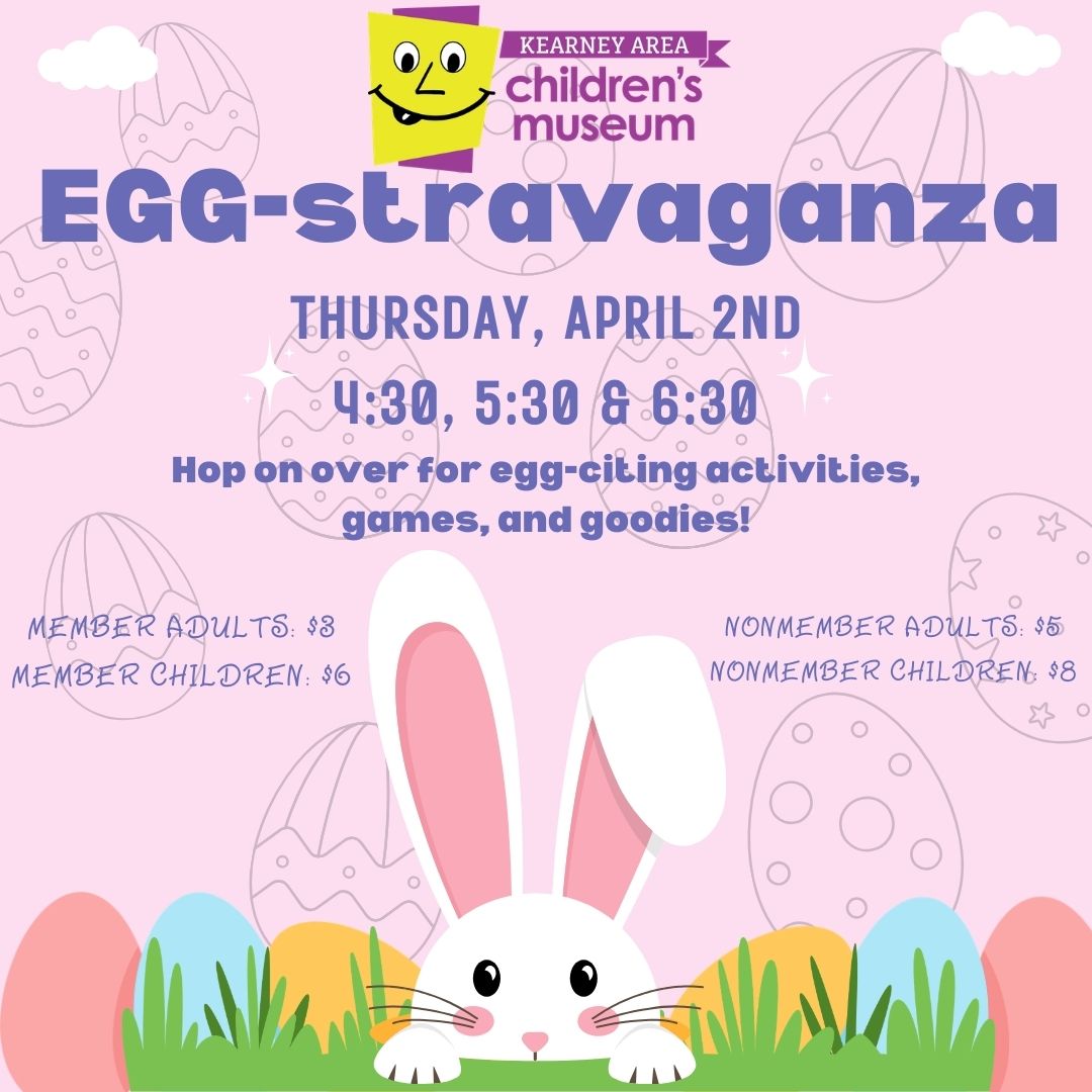Hop on over for egg-citing activities, games, and goodies! 4:30, 5:30, 6:30 Registration required https://kearneychildrensmuseum.org/
